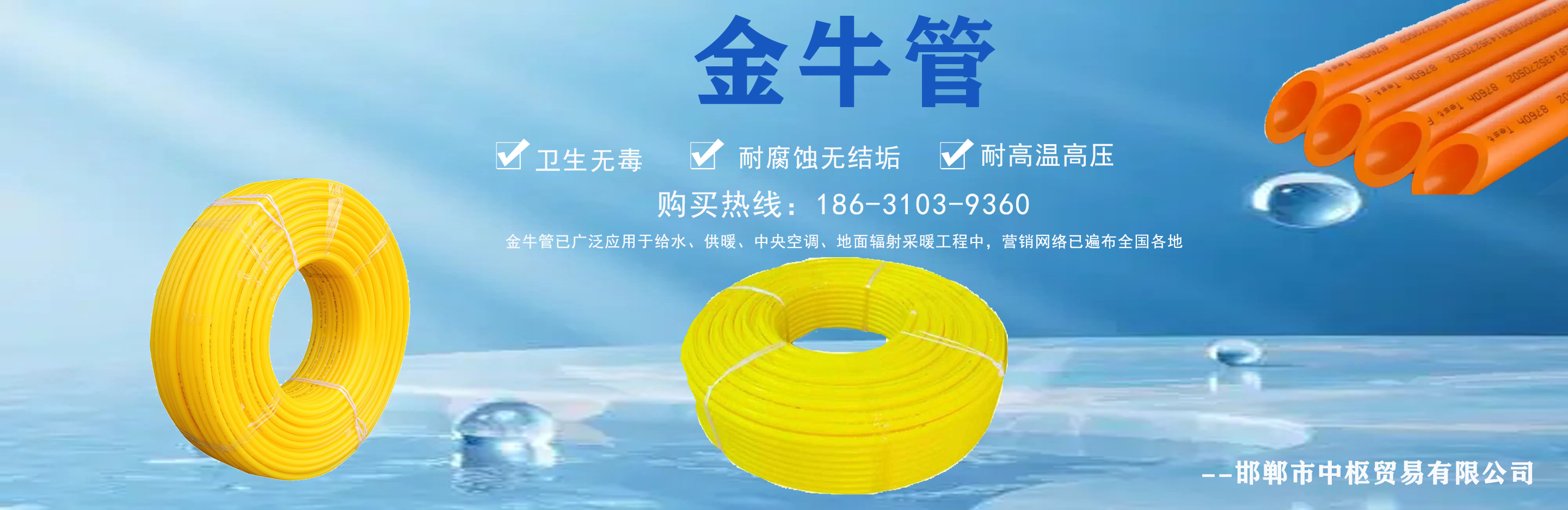 邯鄲市中樞貿易有限公司主營日豐管,日豐管代理,日豐管廠家批發,金牛管,金牛管代理,金牛管廠家批發等,質量可靠,值得信賴!  我公司在產品行業積累了豐富的經驗,具有嚴格的管理制度,同時引進先進的生產設備和生產技術,一如既往的為廣大客戶提供質優價廉的產品。創辦多年來在市場上贏得較好的口碑,銷售網絡覆蓋全國各個省市及地區?! ≠|量為先,信譽為重,管理為本,服務為誠,我們將致力于這一經營理念,關注時代發展,用先進的技術,不斷創新求實,以更優的質量,更好的服務來滿足我們的廣大客戶?! 」纠砟睿河掠谶M取、開拓創...